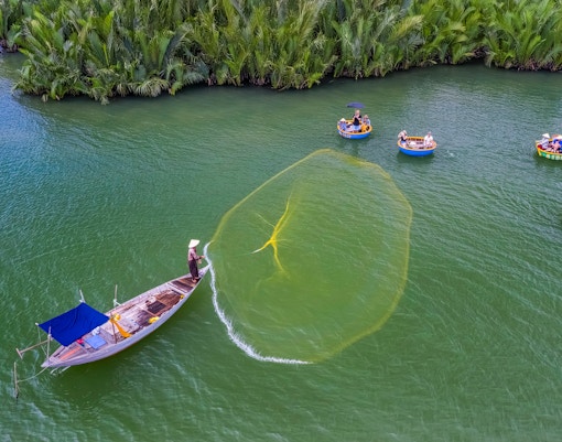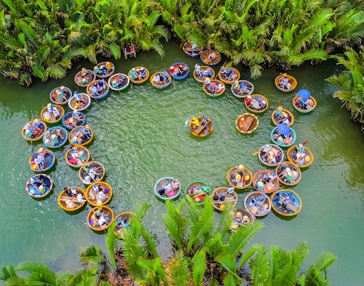 Un labirinto di palme lussureggianti e canali tranquilli da esplorare con la tradizionale barca a cesto, una fuga tranquilla a pochi minuti da Hoi An.